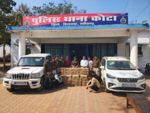 मामले का विवरण इस प्रकार है कि श्री रजनेश सिंह (भा.पु.से.) जिला पुलिस अधीक्षक बिलासपुर के निर्देश पर नशे के अवैध कारोबारियो के विरूद्ध कार्यवाही दौरान थाना कोटा व ए.सी.सी.यू. (सायबर सेल) टीम द्वारा दिनाॅक 02.02.2025 को अवैध रूप से नशे की सामग्री परिवहन करते घटना स्थल कोटा बिलासपुर मेन रोड मौहारखार के पास स्कार्पियो वाहन क्रमांक सी.जी. 04 के.जे. 0913 से 18 पेटी व मारूती अर्टीगा वाहन क्रमांक सी.जी. 16 सी.टी. 0649 से 16 पेटी गोवा विस्की अंग्रेज़ी शराब कुल 35 पेटी कीमती करीब 2.5 लाख रू बरामद किये गये , मौके पर आरोपियों से पुछताछ पर नितिन जायसवाल निवासी बलौदा बाजार-भाटापारा के लिये उपरोक्त शराब लाना बताये। घटनाक्रम में स्कार्पियो वाहन से आरोपी शिवप्रसाद यादव पिता बलराम यादव व सोनू गुप्ता तथा मारूती अर्टीगा वाहन से आरोपी दिनेश गुप्ता पिता सुरेश गुप्ता व दिवाकर उर्फ विक्की गुप्ता सभी निवासी चिरमिरी तथा खरीददार नितिन जायसवाल निवासी बलौदा बाजार-भाटापारा (छ.ग.) के विरूद्ध थाना कोटा में अपराध क्रमांक 98/2025 धारा 34(1)(क), 34(2), 59(क) आबकारी एक्ट पंजीबद्ध कर विधिवत् गिरफ्तार कर न्यायालय पेश किया जाता है।