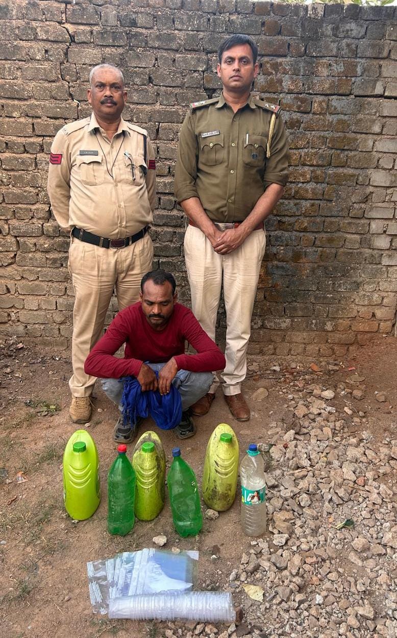 आबकारी विभाग की कार्रवाई: अवैध महुआ शराब के साथ आरोपी गिरफ्तार।