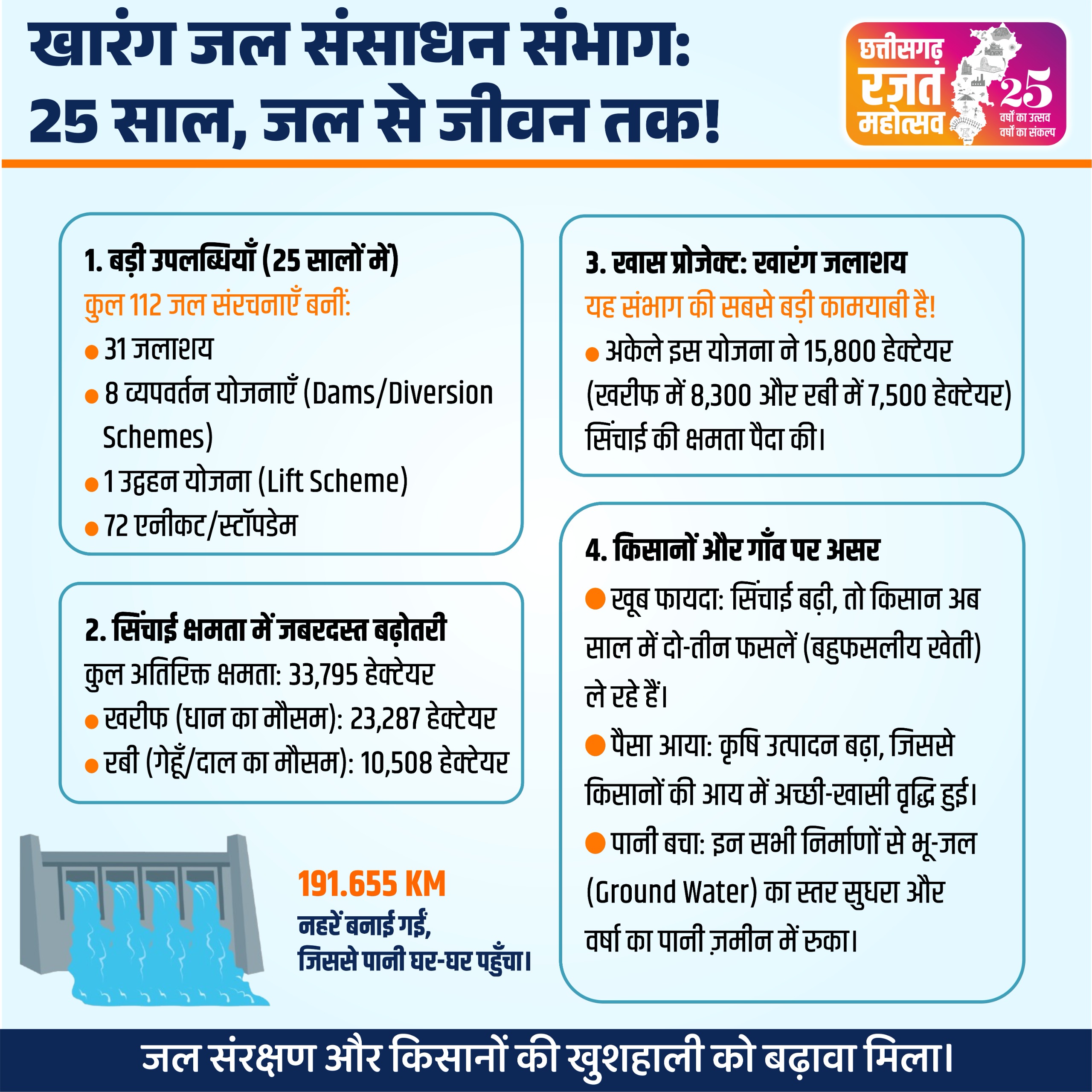 जल से जीवन तक की 25 वर्षों की गौरवगाथा,खारंग जल संसाधन संभाग ने बढ़ाया सिंचाई क्षमता का दायरा।