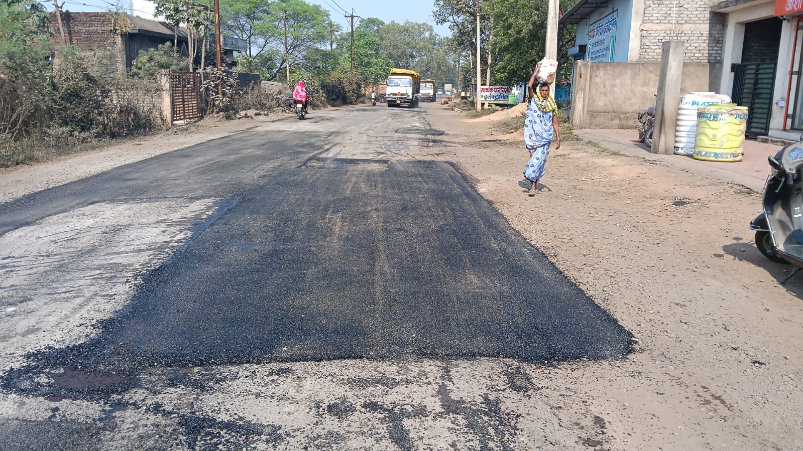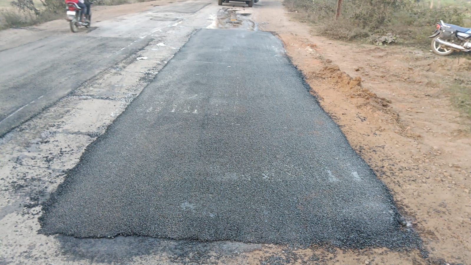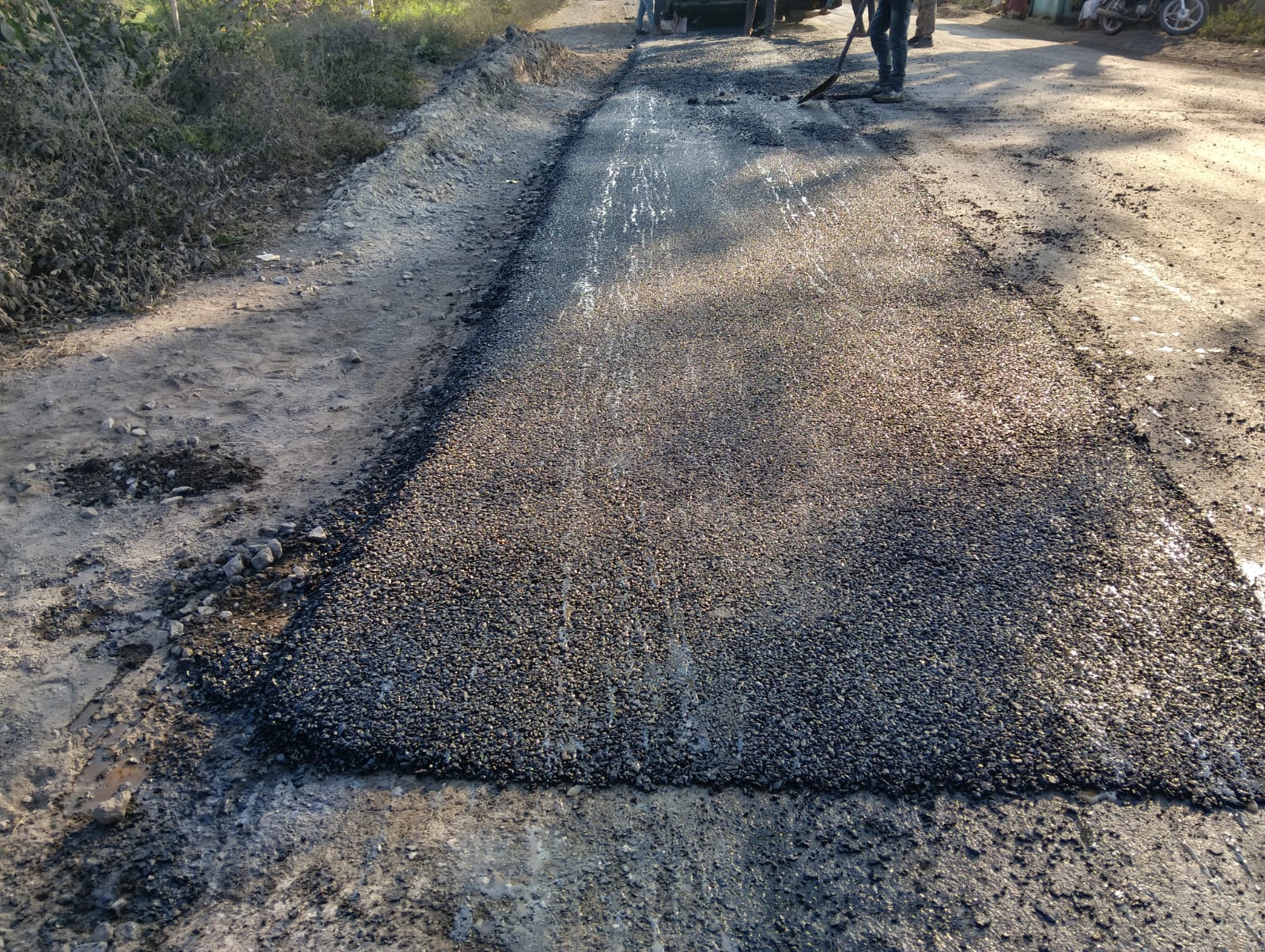सड़कों में तेजी से चल रहा बीटी पेच रिपेयर कार्य।